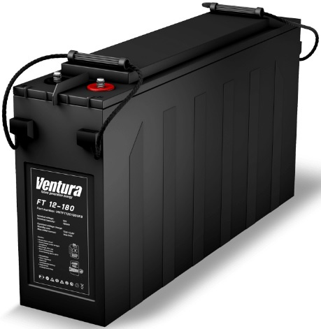 Фронт-терминальный аккумулятор Ventura FT12-200 благодаря своим характеристикам (ёмкость 195 Ач, напряжение 12 В) и компактным размерам обеспечивает максимальную плотность энергии на минимальной площади. Он подходит для установки в 19” и 23” шкафы и стойки, а фронт-терминальное расположение клемм заметно упрощает монтаж и обслуживание. Ventura FT 12-200 выполнен по технологии AGM — стекловолоконный сепаратор удерживает жидкий электролит неподвижно. Аккумулятор используется в ИБП, нефтегазовой сфере, телекоммуникациях и охранно-пожарных системах.