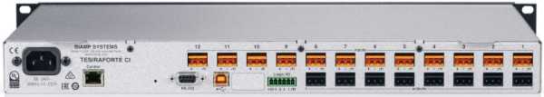 TesiraFORTE CI — это DSP-аудиоплатформа класса серверов с 12 аналоговыми входами и 8 аналоговыми выходами, которая оснащена технологией эхоподавления (AEC) на всех 12 входах. Также имеет до 8 настраиваемых каналов для передачи звука по USB. TesiraFORTE может напрямую взаимодействовать с другими устройствами через порт USB, а также использовать все преимущества самых современных решений для проведения конференций. TesiraFORTE CI также предлагает широкие возможности обработки звука, среди которых: технология эхоподавления Sona, маршрутизация и микширование сигналов, эквалайзер, фильтры, динамическая обработка, задержка, а также инструменты управления, мониторинга и диагностики. Все функции настраиваются через ПО конфигурирования Tesira. TesiraFORTE CI предназначена для малых и средних помещений, например, конференц-залов и залов заседаний, в которых требуется качественное усиление речи и такие функции, как эхоподавление и «микс-минус».