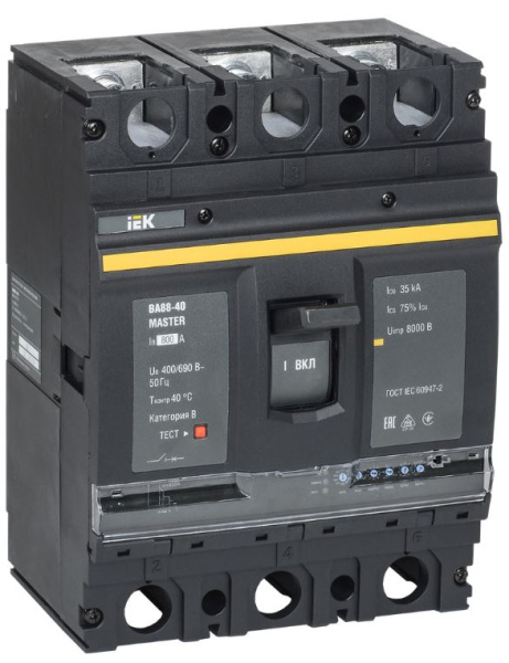 Автоматический выключатель в литом корпусе ВА88 MASTER предназначен для защиты электрических сетей от токов короткого замыкания, токов перегрузки, недопустимых снижений напряжения, а также для проведения тока в нормальном режиме. Автоматические выключатели производятся в 5 типоразмерах, оснащены термомагнитным расцепителем на токи от 16 до 800А и электронным расцепителем на токи от 125 до 800А. Рабочее напряжение 400/690 В. Конструкция автоматического выключателя предусматривает возможность самостоятельной установки дополнительных устройств на объекте заказчика.