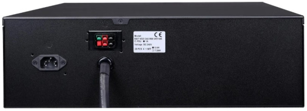 Внешний батарейный блок BAT VGD-240V RM VRT-10K 1A состоит из двадцати 12 В батарей ёмкостью 9 Ач, а также оснащён дополнительным 1А зарядным устройством, что позволяет уменьшить время перезарядки аккумуляторов и подключать к ИБП большое количество батарейных блоков.
