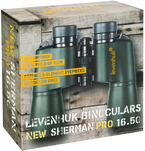Линейка Levenhuk New Sherman PRO сочетает высокое качество оптики и прекрасные эксплуатационные характеристики. Представленная 16-кратная модель устроит как любителей активного отдыха, так и технических специалистов, выбирающих инструмент для работы. Она обладает самым большим увеличением в серии и за счет продуманной оптической системы с большой апертурой, усиленной призмами Porro и многослойным просветлением, пропускает повышенное количество света, что позволяет эффективно проводить наблюдения даже в сумерках. Наблюдаемое изображение порадует хорошей детализацией и насыщенностью цветов – за это отвечает оптика из бариевого крона высокого коэффициента преломления.