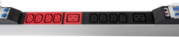 Трёхфазный блок силовых розеток Rem R-3x32-24C13-6C19-A-I-1420-3-3PN в анодированном алюминиевом корпусе с автоматом защиты, индикатором и разъёмами 24 x С13, 6 х С19 на 6 контуров. Совместим со всеми линейками 19” монтажного оборудования.