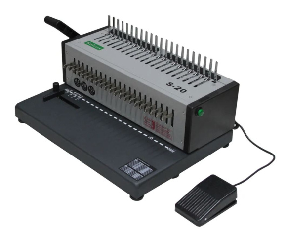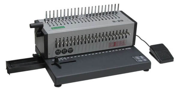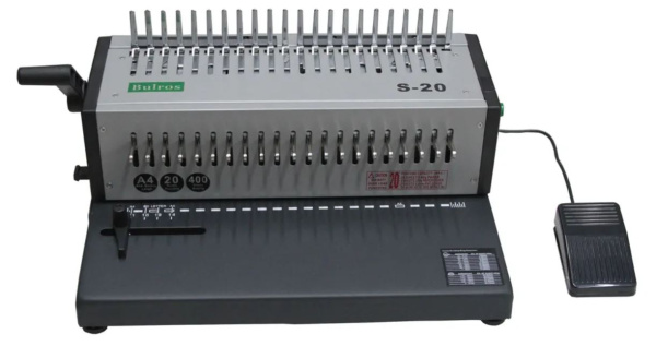 Переплётная машина на пластиковую пружину Bulros S-20 — офисный электрический переплетчик с расширенными возможностями. Прибор предназначен для скрепления листов бумаги в один пакет. Устройства, соединяющие документы на пластиковых пружинах, приобретают как для дома, так и для офиса. С их помощью удобно скреплять каталоги, прайс-листы, рефераты, доклады и курсовые работы. Главное достоинство таких машин — возможность переплетать как небольшие, так и объемные документы.