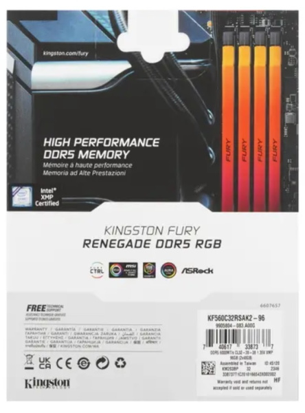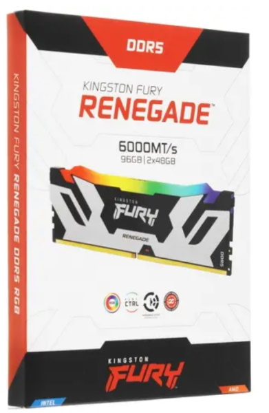 Оперативная память Kingston FURY Renegade Silver RGB KF560C32RSAK2-96 представлена комплектом из двух модулей DDR5 суммарным объемом 96 ГБ. Они обеспечивают ускоренную обработку вычислительных ресурсов в требовательных программах и играх благодаря функционированию на частоте 6000 МГц. Для разгона системы реализована технология XMP.