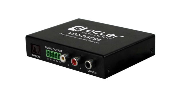 Деэмбеддер и конвертер аудио ECLER VEO-DACS4 используется в цифровых видеосистемах с целью выделения аудиосигнала ARC из видеопотока HDMI и трансформации его из цифрового S/PDIF в аналоговый или цифровой оптический Toslink