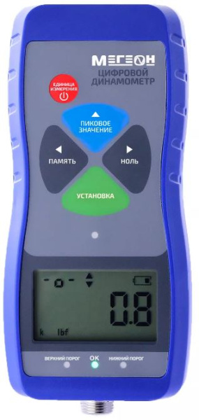 Динамометр МЕГЕОН 53002K является высокоточным инструментом, предназначенным для измерения усилий до 2000 Ньютонов. Он был внесен в государственный реестр измерительных средств под номером 80547-20, что подтверждает его высокое качество и точность измерений. Этот динамометр обладает функцией фиксации пиковых значений и встроенным литий-ионным аккумулятором для длительного автономного использования. Встроенная память на 999 измерений позволяет сохранять результаты экспериментов и анализировать их. Кроме того, данный динамометр позволяет вычислять минимальное, максимальное и среднее значение, а также выбирать между тремя единицами измерения: Ньютоны, килоньютоны и меганьютоны. Он также оборудован USB-портом, который можно использовать для зарядки устройства и передачи данных на компьютер. ЖК-дисплей динамометра имеет подсветку, что обеспечивает удобство работы с ним даже в условиях недостаточной освещенности. Этот дисплей также используется для управления внешними устройствами через специальный интерфейс.