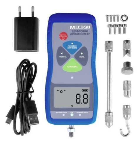 Динамометр МЕГЕОН 53050 с поверкой – это универсальный, многофункциональный и высокоточный прибор для измерения нагрузки на растяжение и сжатие. Предназначен для измерения силы и с успехом может применяться при измерении усилия вставки и разъединения, испытаниях на разрушение и иных задач. Наличие коммуникационного порта USB и специального программного обеспечения позволяют автоматизировать создание протокола измерений, а также просматривать кривые силы в режиме реального времени.