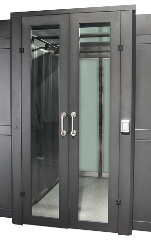 Распашные двери имеют механическую систему открытия. Двери могут быть оборудованы системой контроля доступа во внутреннее пространство коридора, которая значительно увеличивает уровень безопасности системы шкафов.