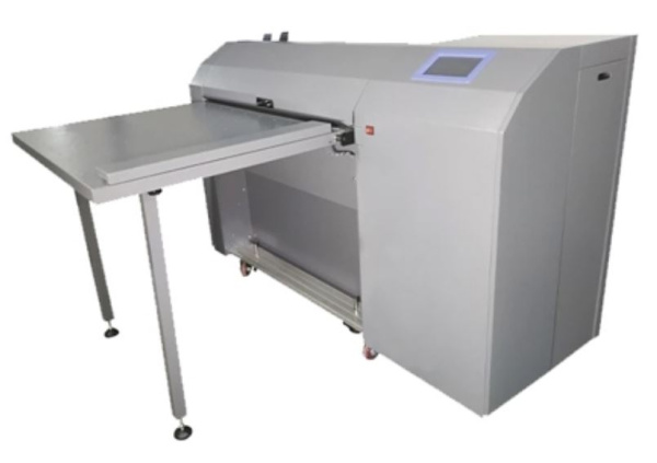 Выполняет фальцовку в продольном и поперечном направлении за один проход.