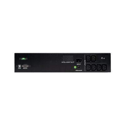 Форма выходного напряжения (от АКБ) – чистый синус. Компактность: высота 2U, глубина 310 мм. Широкий диапазон входного напряжения за счет встроенного стабилизатора напряжения – 170-280 В. Время переключения от сети на АКБ и наоборот – 4-10 мс. Информационный ЖК-дисплей. Выходные разъемы – 6 шт. IEC C13. Коммуникационные интерфейсы: USB, RS-232, интеллектуальный слот для установки карт расширения функционала. Фирменное бесплатное программное обеспечение для мониторинга и управления ИБП. Время автономной работы до 21 минуты (для 25% нагрузки). Свинцово-кислотные АКБ от мировых брендов. Функция аварийного выключения. Защита от перегрузки.