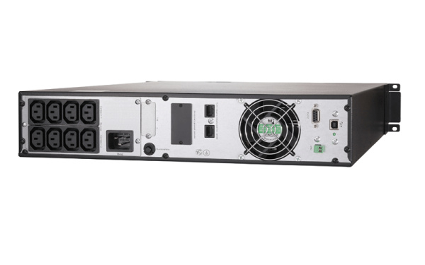 Онлайн ИБП СИПБ2КА.10-11 двойного преобразования полной мощностью 2000 ВА с встороенными аккумуляторами. Выходной коэффициент мощности 1,0 позволяет защищать больше современного оборудования с высокой активной мощностью. Возможность установки в стойку или на пол, высота в стойке 2U. Подключение дополнительных аккумуляторов для увелечения времени автономной работы. Внутренний мини слот для установки SNMP-карты.