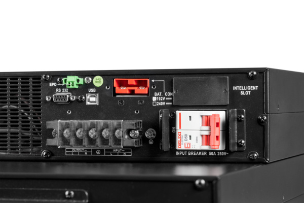 ИБП Smart – Save Online SRVSE6KRTXLI4U 6кВА/5,4кВт двойного преобразования для защиты чувствительного оборудования. Имеет высокий коэффициент мощности PF=0.9. Предназначен для напольной установки или для установки в серверные стойки. Более продвинутый LCD-дисплей в управлении и контроля. Наличие разъёма EPO для системы аварийного отключения. Корпус компактный – 4U. Возможность подключения до 10 дополнительных внешних батарейных блоков.