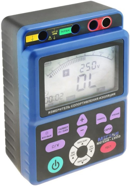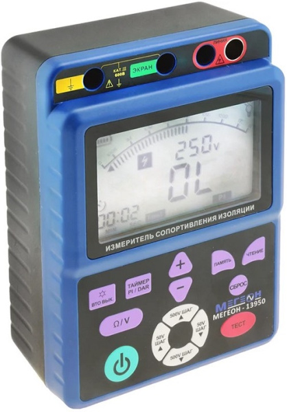 Измеритель сопротивления изоляции МЕГЕОН 13950 представляет собой портативный контрольно-измерительный прибор для проверки сопротивления изоляции с использованием высоких значений испытательных напряжений оснащен USB интерфейсом.