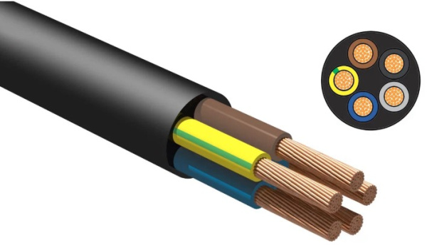 Кабель силовой гибкий на напряжение 0,66 кВ круглой формы. Изоляция выполнена из композиции на основе термоэластопластов. Кабель соответствуют требованиям ГОСТ 24334-2020. Кабель имеет 5 медных многопроволочных жил сечением 2,5 мм2.