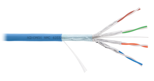 Кабель NMC 4355C-IB выполнен в экранированном исполнении F/FTP, соответствует категории 6A и предназначен для внутренней прокладки. Внешняя оболочка выполнена из не распространяющего горение при групповой прокладке и не выделяющего коррозионно-активных газообразных продуктов при горении и тлении полимерного материала в исполнении нг(A)-HF.