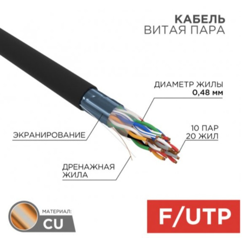 Кабель витая пара F/UTP 5e кат. 10 пар Rexant 01-1204-R – купить за 45 003 ₽ | Dip-TEC. Решения для бизнеса любого масштаба