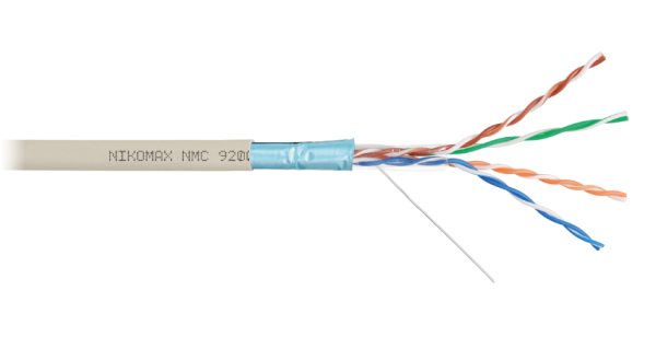 Кабель NMC 9200L-IY выполнен в экранированном исполнении F/UTP, соответствует категории 5e и предназначен для внутренней прокладки. Внешняя оболочка выполнена из не распространяющие горение при групповой прокладке, с пониженным дымо- и газовыделением и с низкой токсичностью продуктов горения, полимерного материала в исполнении нг(A)-LSLTx.
