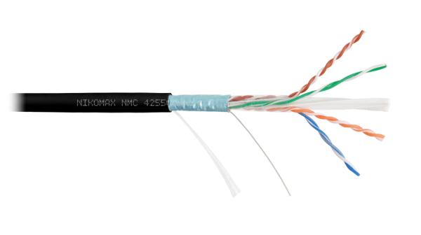 Кабель NMC 4255C-BK выполнен в экранированном исполнении F/UTP, соответствует категории 6А и предназначен как для внутренней, так и для внешней прокладки. Внешняя оболочка изготавливается из неподдерживающего горение полимерного материала, устойчивого к воздействию ультрафиолетового излучения, малодымного и не выделяющего ядовитых соединений в процессе горения, исполнение нг(A)-HF