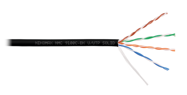 Кабель NMC 9100C-BK выполнен в неэкранированном исполнении U/UTP, соответствует категории 5e и предназначен для внутренней/внешней прокладки. Внешняя оболочка выполнена из не распространяющего горение при групповой прокладке и не выделяющего коррозионно-активных газообразных продуктов при горении и тлении, устойчивого к воздействию ультрафиолетового излучения, полимерного материала в исполнении нг(A)-HF.