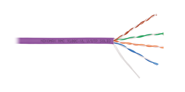 Кабель NMC 9100C-VL выполнен в неэкранированном исполнении U/UTP, соответствует категории 5e и предназначен для внутренней прокладки. Внешняя оболочка выполнена из не распространяющего горение при групповой прокладке и не выделяющего коррозионно-активных газообразных продуктов при горении и тлении, полимерного материала в исполнении нг(A)-HF.