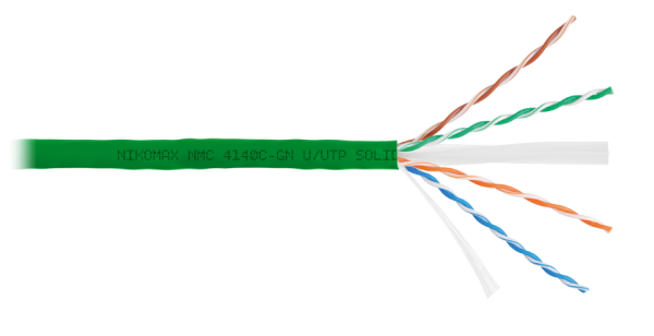 Кабель NMC 4140C-GN выполнен в неэкранированном исполнении U/UTP, соответствует категории 6 и предназначен как для внутренней, так и для внешней прокладки. Внешняя оболочка изготавливается из не распространяющего горение при групповой прокладке и не выделяющего коррозионно-активных газообразных продуктов при горении и тлении полимерного материала в исполнении нг(A)-HF.