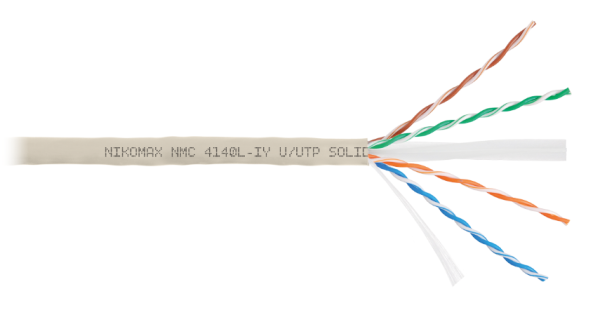 Кабель NMC 4140L-IY выполнен в неэкранированном исполнении U/UTP, соответствует категории 6 и предназначен как для внутренней, так и для внешней прокладки. Внешняя оболочка выполнена из не распространяющие горение при групповой прокладке, с пониженным дымо- и газовыделением и с низкой токсичностью продуктов горения, полимерного материала в исполнении нг(A)-LSLTx.
