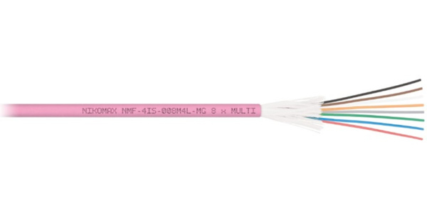 Кабель NMF-4IS-004M4L-MG предназначен для внутренней прокладки и содержит четыре оптических волокон в плотном буфере, соответствующих стандартам ISO/IEC 11801 OM4. Поверх волокон накладываются стеклонити и внешняя оболочка. Внешняя оболочка выполнена из не распространяющие горение при групповой прокладке, с пониженным дымо- и газовыделением и с низкой токсичностью продуктов горения, полимерного материала в исполнении нг(A)-LSLTx.