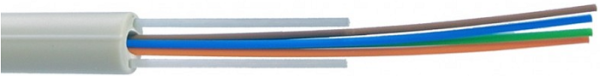 Конструкция кабеля представляет собой полую трубку из диэлектрического материала LSZH (малодымный, не содержащий галогенов пластикат). В оболочке по длине расположены два стеклопластиковых прутка, которые предотвращают осевое кручение кабеля и выполняют функции силовых элементов. Внутри трубки находятся свободно уложенные оптические волокна.