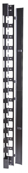Вертикальный кабельный организатор с крышкой предназначен для скрытой прокладки и укладки, а также хранения кабелей и шнуров в шкафах серии S3000 шириной 800 мм.