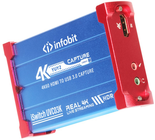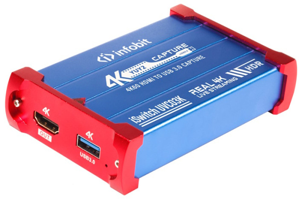 Infobit iSwitch UVC03K - Захват видео 4K Ultra HD USB 3.0. Один вход HDMI, один петлевой выход HDMI. Мониторинг и запись. USB 3.0 для записи изображений в формате Full HD на высокой скорости. Поддержка большинства программ для сбора данных, таких как VLC, OBS и т. д.