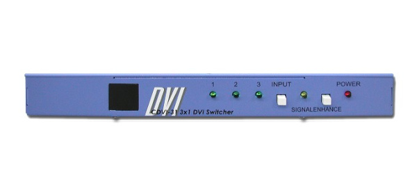 CDVI-31 – коммутатор 3х1 сигналов DVI-D Single Link с дистанционным управлением, позволяющий осуществлять коммутацию нескольких источников сигнала на один выход. Управление устройством осуществляется либо кнопкой на лицевой панели, либо при помощи инфракрасного пульта ДУ. Прибор поддерживает разрешения вплоть до UXGA и 1080p.
