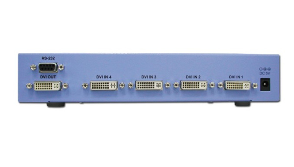 CDVI-41 – коммутатор 4x1 сигналов интерфейса DVI-D Single Link, позволяет произвольно коммутировать сигнал с одного из четырех источников DVI-D на один выход. Поддерживает передачу сигналов компьютерной графики c разрешением до 1600х1200 и форматов высокой четкости до 1080p.