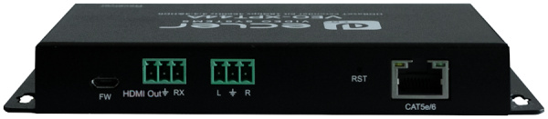 На выходе передатчика, помимо разъёма RJ45 для витой пары, предусмотрен HDMI-выход, подключение к которому экрана позволит видеть видеопоток который транслируется в данный момент.