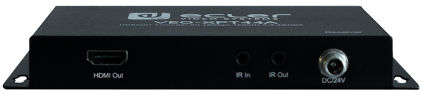 В комплект для передачи HDMI и других сигналов по витой паре ECLER VEO-XPT44A входят два прибора - передатчик и приемник. Функция первого - без потерь преобразовать входящий HDMI-сигнал с разрешением вплоть до ультравысокого (4K/60 (4:4:4) c HDCP 1.4/2.2 и HDR10) в сигнал для отправки по витой паре и транслировать его на приемник. В свою очередь приемный модуль производит декодирование сигнала полученного по витой паре в сигнал HDMI, который передается на подключенный к его выходам устройствам. Дополнительно двунаправленно передаются сигналы управления ИК и RS-232.