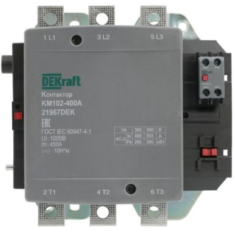Контакторы КМ-102 предназначены для пуска и остановки асинхронных двигателей с короткозамкнутым ротором, для коммутации осветительных сетей, нагревательных цепей, трёхфазных конденсаторных батарей, первичных цепей трёхфазных трансформаторов.