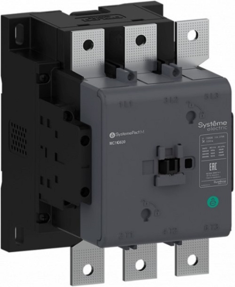 Контактор серии SystemePact MC1G на номинальный ток 500 А, 3P, 2НО+2НЗ; напряжение управления – 250…500 В пер./пост. тока; защита от просадок напряжения от 0,7 до 1,2 Us; крепеж – на монтажной плате. Контакторы серии SystemePact MC1G разработаны для управления двигателями различных типов, а также насосами, лифтов и системами вентиляции. Они имеют увеличенный электрический и механический ресурс; могут оснащаться дополнительными контактами, тепловыми реле, механическими блокировками.