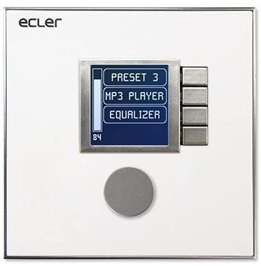WPNETEX – встраиваемая настенная панель управления для EclerNet с LCD-экраном. Служит для регулировки громкости, выбора источника и пресета, имеет 3-полосный эквалайзер. Подключение – витая пара 5e или лучше. Электропитание – PoE или от блока питания WP-PSU. Устройство настраивается с помощью специального ПО EclerNet Manager.