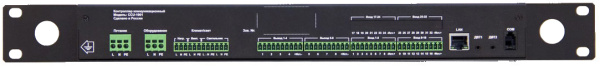 Контроллер мониторинга и управления CCU-1001 — устройство, предназначенное для контроля и поддержания микроклимата во внутреннем пространстве телекоммуникационного шкафа или шкафа другого подобного назначения, а также удаленного мониторинга температуры и влажности, напряжения, состоянии оборудования в шкафу, положении дверей, и удаленного управления отдельными элементами и приборами в шкафу.Контроллер защищает оборудование шкафа от выхода из строя по причине неблагоприятных климатических условий, управляя электропитанием и работой источников бесперебойного питания.Контроллер передает данные в систему мониторинга по сети Ethernet (протокол SNMP) и предоставляет доступ к информации и управлению через встроенный Web-интерфейс.Контроллер имеет наглядную встроенную световую индикацию и графический дисплей, для индикации измеряемых параметров и состояния внешних сигналов и отображения или редактирования настроек.Управление контроллером осуществляется локально со встроенной шестикнопочной клавиатуры или удаленно, через Web-интерфейс.Рекомендуется для применения в шкафах с телекоммуникационным, вычислительным оборудованием, другим электронным оборудованием или оборудованием чувствительным к окружающей температуре, в шкафах с оборудованием, имеющим в качестве сигнальных выходов только сухие контакты, на удаленных объектах без постоянного присутствия персонала, в том числе на объектах с нестабильным питающим напряжением (функция измерения сетевого напряжения).