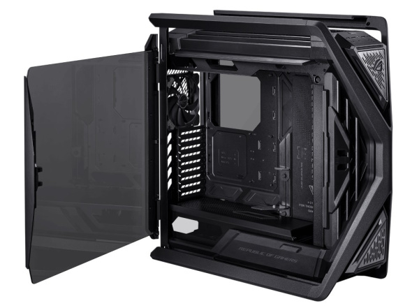 Компьютерный корпус ROG Hyperion GR701 сочетает в себе потрясающе стильное оформление и максимальную функциональность. Выполненный в фирменной геймерской эстетике ROG, он идеально подходит для сборки суперсовременных высокопроизводительных систем, поскольку предлагает поддержку двух 420-миллиметровых радиаторов СВО, совместимость с новейшими массивными видеокартами, для которых имеется встроенный алюминиевый кронштейн, а также два порта USB-C на фронтальной панели с поддержкой быстрой зарядки внешних устройств с мощностью 60 Вт при использовании совместимой материнской платы ROG.