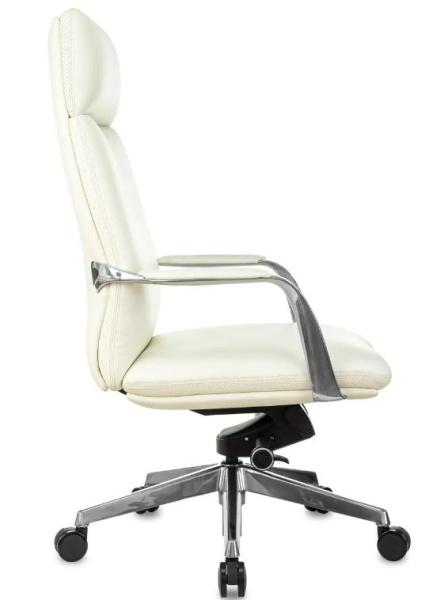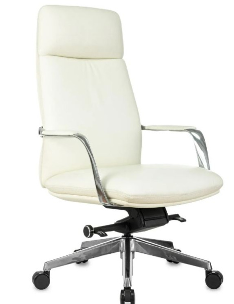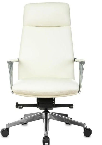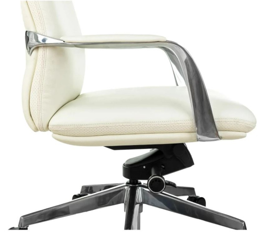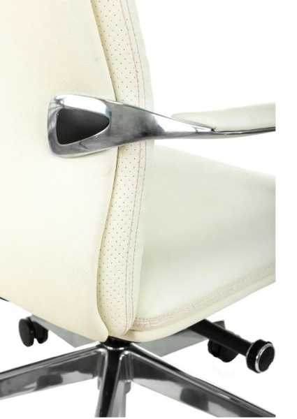 Обивка натуральная кожа белого цвета. Хромированная крестовина. Хромированные подлокотники в мягкими кожанными накладками. Мультиблок с возможностью наклона и фиксации кресла. Ограничение по весу 150 кг.