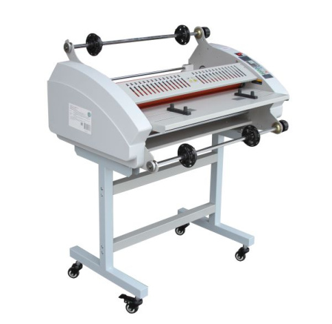 Рулонный ламинатор компактен, удобен в работе для ламинирования полиграфической продукции в малых и средних типографиях. Двухстороннее/одностороннее ламинирование силиконовыми валами внутреннего нагрева. Отключение нижнего вала для одностороннего ламинирования. В комплекте стенд на колёсах. Цифровая регулировка скорости и температуры. LED дисплей. Легкая установка рулонов, длинные стойки для рулонов большой намотки, простая фиксация натяжения плёнки, регулятор сведения валов, автоматическое поддержание режима натяжения плёнки, встроенный ручной резак.