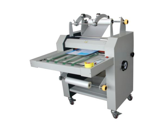 Профессиональный напольный рулонный ламинатор с конвейером для ручной подачи листов, обрезкой и перфорацией плёнки с рулона, универсален в работе для ламинирования полиграфической продукции различной толщины. Выполняет ламинирование двух типов: двухстороннее или одностороннее. Происходит это посредством металлического и силиконового валов внутреннего нагрева. Чтобы улучшить теплопередачу от нагревательного элемента к пленке, сделать ее более качественной, верхний вал выполнен целиком из металла.