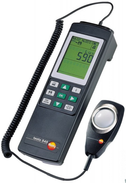 Люксметр Testo 545 - уровень освещенности на рабочих местах должен соответствовать минимальным допустимым значениям и должен проверятся регулярно. Используя ПО, места замеров могут быть сохранены, а индивидуальные значения интенсивности света образованы в кривую. Профиль освещенности обеспечивают данными об отклонении от нормы.