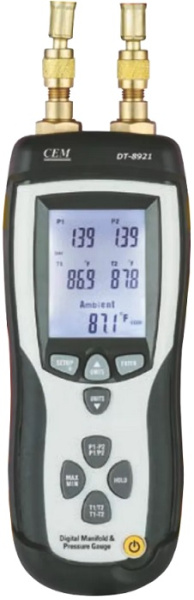 Дифференциальный двухканальный манометр – это универсальный профессиональный цифровой манометр для испытания хладагента. Корпус и оболочка, а также соединительные клеммы долговечны и адаптированы к ударам высокого и низкого давления, а также сложным измерительным средам.