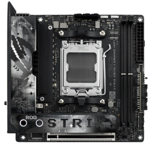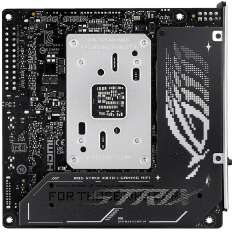 Материнская плата ASUS ROG STRIX X870-I GAMING WIFI – яркий пример сочетания выдающихся функциональных возможностей и компактности. Модель соответствует форм-фактору Mini-ITX и имеет форму квадрата со сторонами 170 мм. Несмотря на миниатюрность, плата рассчитана на создание производительного игрового компьютера. Чипсет AMD X870 гарантирует полную отдачу процессоров AMD AM5. Частота памяти DDR5 может достигать внушительных 8600 МГц. Такое быстродействие ОЗУ прежде всего актуально для ресурсоемких игр.