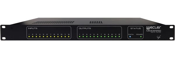 MIMO1212SG – цифровая матрица аудиосигналов, DSP-аудиопроцессор серии MIMO с фиксированной архитектурой, 12 универсальных входов (Mic/Line) с включаемым фантомным питанием 48 В, 12 выходов. Имеются 8 логических входов GPI. Функция планирования событий по расписанию. Настраивается и с панелей WPm, по RS-232 и IP с помощью специального ПО EclerNet.