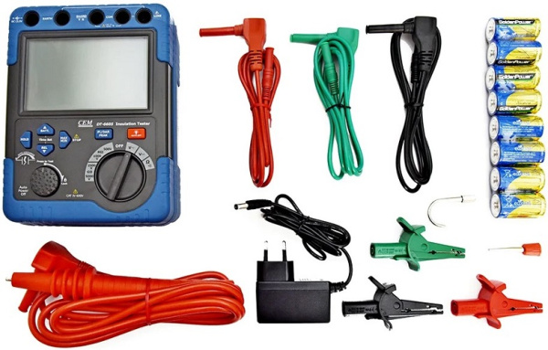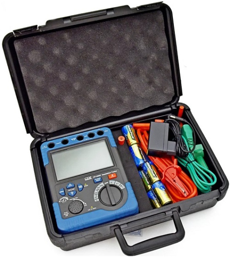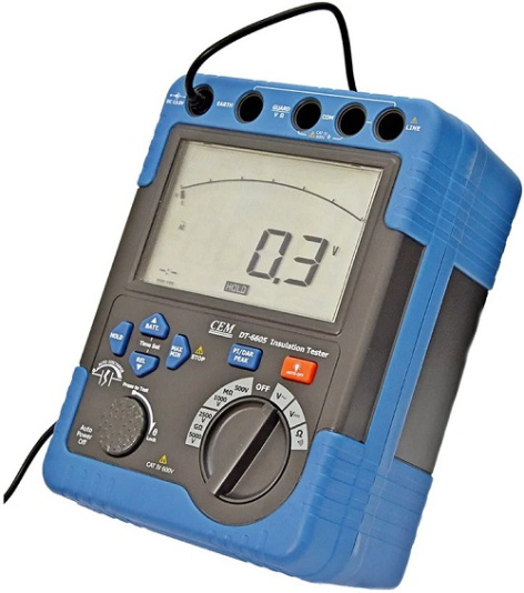 Мегаомметр представляет собой портативный прибор для измерения сопротивления изоляции высоковольтных линий. 4 диапазона напряжения (500В, 1000В, 2500В, 5000В) позволяют настраивать микрокомпьютер на работу с конкретным объектом. В режиме прозвонки цепи предусматривается наличие звукового сигнала. Для комфорта в работе есть возможность выбирать уровень подсветки экрана.