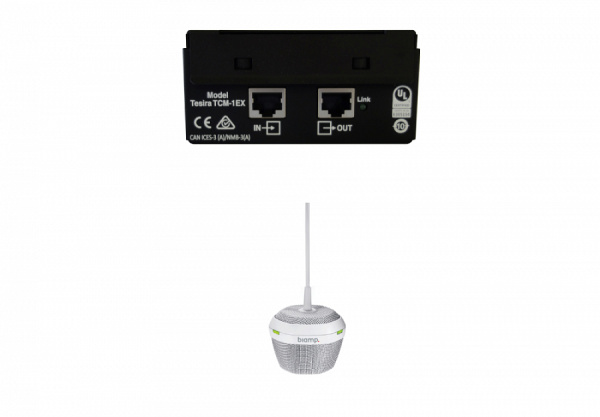 Модель Biamp TCM-1EX — это вспомогательный потолочный микрофон с поддержкой AVB, предназначенный для использования в системах Tesira. Каждый микрофонный блок, состоящий из запотолочного коммутационного бокса и подвесного микрофона, использует технологию направленного звука с тремя 120-градусными зонами, что позволяет обеспечивать полный охват помещения для совещаний на 360 градусов. Микрофон TCM-1EX автоматически отслеживает и с помощью интеллектуальных алгоритмов микширует речь всех сидящих за столом, позволяя собеседникам, находящимся на удалении друг от друга, слышать всю беседу естественным образом.
