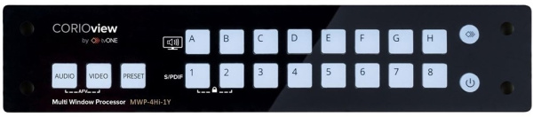MWP-4Hi-1Y - компактный модульный мультивьювер tvONE серии CORIOview, 4 входа HDMI 1920х1080 (FullHD 1080p), 2 входа видео из Ethernet с кодеками H.264, H.265, вход USB, 1 выход HDMI 4K Ultra HD. Возможно воспроизведение файлов с внутреннего накопителя.