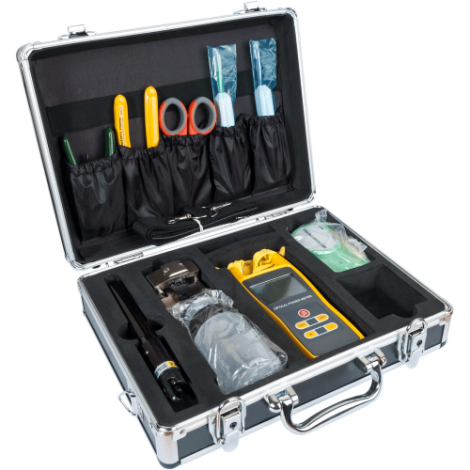 Набор предназначен для проведения монтажных работ с оптическими кабелями. При помощи инструментов,входящих в состав набора, можно разделать ВО кабель, зачистить волокна для сварки, сколоть волокно, измерить мощность излучения в волокне, почистить коннекторы и т. д.